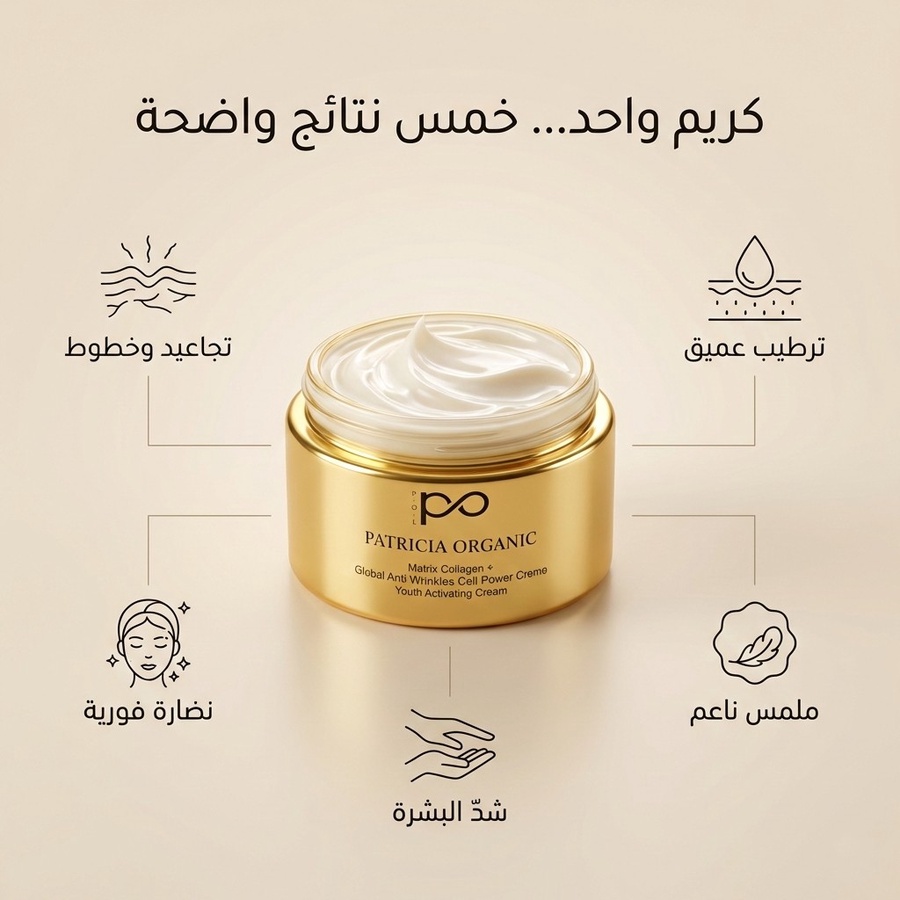 كريم ماتركس كولاجين من باتريشيا اورجانك بتركيبة فاخرة تساعد على شد البشرة، معالجة التجاعيد والتصبغات، وتعزيز الإشراقة والنضارة لجميع أنواع البشرة.